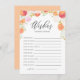 Whimsical baby shower well wishes card featuring watercolor illustrations of peaches, flowers and greenery with polka dots pattern. Personalise by adding a name. This peaches wishes for baby card is perfect for spring and summer baby showers.