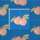 A beautiful blue fabric with a peach fruit pattern . Make sure to choose the type of fabric suited for your project .