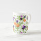 Peaches Plums Purple Cute Fruit Botanical Pattern Bone China Mug