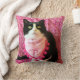 This gorgeous throw pillow features Peaches the Tuxedo cat on a hot pink background wearing a pink flannel bandanna with a hot pink pom pom border and a "P" embroidered on it. A great pillow for the tuxedo cat lover in you. Copyright Peaches the Tuxedo Cat