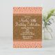 Peachy Pink & Gold Confetti Dots Party Invitations