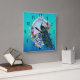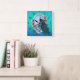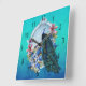Peacock And Floral Square Wall Clock in blended blue's with delicate flowers and an ice blue framing the bird is sat on