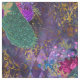 This bold design showcases a beautiful teal and blue peacock with pink and purple flowers on a purple background with gold embellishments.