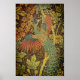 A beautiful Victorian era jacquard featuring a peacock and oak leaves floral design. In rich colors of teal, coral, gold and amber. Very elegant.