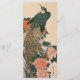 Peacock and Peonies (early 1840s) by Hiroshige is a vintage Japanese fine art wood block painting featuring a beautiful peacock bird with peony flowers in bloom. This image originally came from a woodblock print.