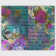 This vibrant design showcases a beautiful peacock with gold embellishments surrounded by purple flowers over a teal, purple, and pink background with cursive writing. Great for decoupage art, paper crafts, or gift wrapping. Please make sure to check out the "seam" view to make sure its acceptable.