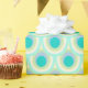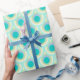 Everyday wrap ideal for birthdays or other occasions. Modern patterned wrapping paper in a aqua mint green hued pattern based on peacock / peafowl feathers. Uniquely designed by Sarah Trett.