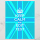 Your personalised Keep Calm saying on a vibrant aqua blue decor. A personalised Keep Calm style saying on a one of a kind gift. Humourous or whimsical try on your creative words on two editable lines of text. Remember to use CAPITAL letters for best results.