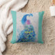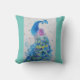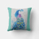 Peacock art Watercolour Painting Cushion Aqua mint