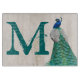 Peacock Bird Feather Teal Turquoise Vintage Victorian Monogram Initial Glass Cutting Board Personalised