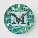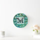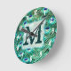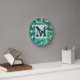 Peacock Bird Feather Teal Turquoise Vintage Victorian Monogram Initial Wall Clock Personalised
