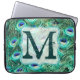 Peacock Bird Feather Teal Monogram 15" Laptop Case