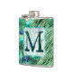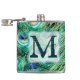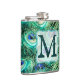 Peacock Bird Feather Teal Monogram Whiskey Flask