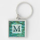 Peacock Bird Feather Teal Turquoise Vintage Victorian Monogram Initial Key Chain