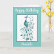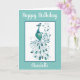 Elegant turquoise Peacock design birthday card fully customisable