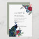 Beautiful Peacock with Teal and blue, burgundy flowers, sage green leaves feature on this fall, autumn, winter wedding items. Part of a larger collection that includes budget wedding invitations, save the dates, RSVPs, thank you photo cards, bridal and wedding party gifts, and more. For a detailed FREE winter wedding planning, guide visit weddingdesignchic.com.