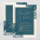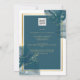 Peacock Blue Gold Alcohol INK Chic Wedding Invite