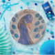 If you have ever watched a peacock strut proudly across a neatly clipped lawn or the terrace of an old country house, you will have marveled at the beautiful iridescence of their green and turquoise feathers. This charming original watercolor is painted in vivid shades of blue, turquoise, green and orange that light up your world as the peacock opens his tail like a magnificent, colorful fan.