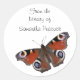 A European peacock butterfly, Inachis io, sticker with a customisable background colour and text. The text reads "From the library of" and a fictitious name to change to your own.