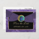 This SAVE THE DATE postcard features an elegant golden peacock feather button on a satin bow graphic. Easily customised.