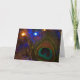 Lovely peacock feather still life with Christmas tree and lights in the background. Very festive design that is perfect for your Christmas cards this year.