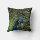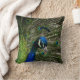 Throw pillow with a closeup photo of a peacock. Customisable.