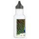 Closeup male peacock (Pavo cristatus - Bird) display with flowers in the foreground