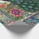 PERFECT FOR DECOUPAGE. Elegant Peacock in a botanical vintage style with ephemera & Art Nouveau borders on heavy weight wrapping paper. A bright and colourful painting of an elegant Peacock in bold shades with a crackle distressed texture including salmon pink and lavender pink flowers. Art graphically designed by internationally licensed artist and designer, Audrey Jeanne Roberts. Copyright.