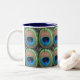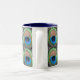 Enjoy this tiled close up eye of a peacock feather. This picture has the background in black and white, but the bright blue and green eye of the feather still in colour creating a really unique effect.