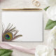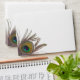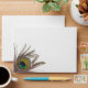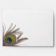 Peacock feather featured on front corner and wraps around the back to show some wisps.