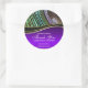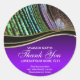 Multi purpose any occasion - Thank You sticker in vibrant purple & gold with super close up of a peacock feather - fully customise