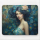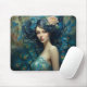 Peacock Feather Beauty: Woman in Teal and Blue Mouse Pad