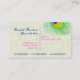 Peacock feather azure blue hot pink eye catching business cards. An elegant, sophisticated, stylish, classy design of a peacock feather in lime and emerald green, blue and orange, a blue band and an illustration of a pink heart jewellery diamond with gold outline with strass on ivory ecru damask background. Modern, yet classic theme with a light touch of vintage. Note that the heart diamond jewel is “printed on” and not a real crystal, so are the strass. For personal or professional use by designers, fashion, accessories or beauty business.