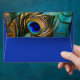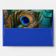 A beautiful faux shimmering peacock feather rests aainst a marbled background. The plume appears to sparkle and shine and the blue envelope makes it pop. This elegant and luxurious design is ideal for any peacock themed event or function. Please note that the warning may be ignored as what you see if what you will receive. Thank you