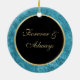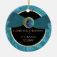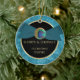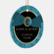 This beautiful first Christmas together ornament features an elegant peacock feather golden button on a satin ribbon graphic. Easily customised.