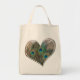 Fun peacock bag with a double heart with peacock feathers against a rock background in a heart shaped design. Great grocery bag or put it on a different bag