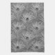 An elegant peacock feather pattern done in a silver glitter look on grey background.