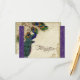 PAPER SELECTION: This is shown on "basic paper", another great choice would be "metallic ice" which is a clean white, pearlized shimmery surface. It would also be beautiful on "Champagne Metallic" linen, felt or any of the other choices. COLOR PALETTE: deep purple, tan, cream royal blue, green, and rust. DESIGN: This antique vintage inspired Reception invitation invite is from the matching wedding collection, and has a complete ensemble of products and can be created in several colorways. If you would like it to match your wedding let us know via email and we'll be happy to assist you. This design consists of a stately peacock on a tree branch vintage art element layered three vintage peacock feathers and over an angel etching, swirls, antique handwriting, hand painted lace overlayed on parchment and a beautiful original art damask pattern. The background colour can be changed to match your wedding.
