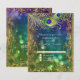 Matching RSVP Response Card. This design is made with hand painted watercolor peacock feathers adorned with graphically designed diamond jewels (NOTE: this is a flat printed invitation there is no actual jewels, gold glitter or metallic foil or ink used) over a colourful bokeh sparkle, twinkling lights background in deep, rich purple, blue, aqua and green. Easily change out your text using the template fields provided. Timeless, classic traditional style with a modern twist for a black tie elegance. Art by internationally licensed artist, Audrey Jeanne Roberts, copyright.