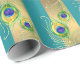 Peacock Feather Gold Swirl Baroque Wreath Jewel Wrapping Paper