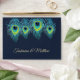 Peacock Feather Navu Blue Gold Wedding Envelopes