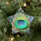 Peacock Feather on Turquoise Ceramic Ornament