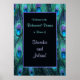 Elegant pre-wedding dinner party poster print honouring the Bride and Groom to Be with a modern Peacock feather version in dramatic aqua blue and purple. Customise the with the time, date, and other information.