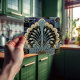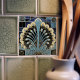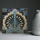 This stunning ceramic tile features a symmetrical peacock feather pattern inspired by the Art Deco and Belle Epoque periods. The Belle Epoque, or "beautiful era," was a time of artistic and cultural flourishing in Europe from the late 19th to early 20th century. The peacock feather was a popular motif during this time, symbolising luxury, beauty, and renewal.
