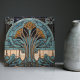 This stunning ceramic tile features a symmetrical peacock feather pattern inspired by the Art Deco and Belle Epoque periods. The Belle Epoque, or "beautiful era," was a time of artistic and cultural flourishing in Europe from the late 19th to early 20th century. The peacock feather was a popular motif during this time, symbolising luxury, beauty, and renewal.