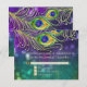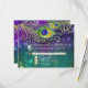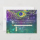 Matching RSVP Response Card. This design is made with hand painted watercolor peacock feathers adorned with graphically designed diamond jewels (NOTE: this is a flat printed invitation there is no actual jewels, gold glitter or metallic foil or ink used) over a colourful bokeh sparkle, twinkling lights background in deep, rich purple, blue, aqua and green. The reverse side is the matching shimmering lights background with the frame only. Easily change out your text using the template fields provided. Timeless, classic traditional style with a modern twist for a black tie elegance. Art by internationally licensed artist, Audrey Jeanne Roberts, copyright.