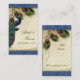 "Peacock Feather Wedding Table Seating Escort Cards." These are table seating escort cards for wedding receptions or bridal showers. A very inexpensive option - all you have to do in hand write the table number and guest's name in nice handwriting and you have an elegant touch for your reception tables! This antique vintage inspired wedding collection has a complete ensemble of products and can be created in several colorways. If you would like it to match your wedding let us know via email and we'll be happy to assist you. This design consists of a stately peacock on a tree branch vintage art element layered three peacock feathers and over an angel etching, swirls, antique handwriting, hand painted lace overlayed parchment and a beautiful original art damask pattern.