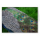 Original photograph of the back of a peacock, showing the beginning of the tail, with the distinctive feathers of gorgeous green and blue.