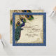 PAPER SELECTION: This is shown on "basic paper", another great choice would be "metallic ice" which is a clean white, pearlized shimmery surface. It would also be beautiful on "Champagne Metallic" linen, felt or any of the other choices. COLOR PALETTE: horizon navy blue, tan, cream royal blue, green, and rust. DESIGN: This antique vintage inspired wedding collection has a complete ensemble of products and can be created in several colorways. If you would like it to match your wedding let us know via email and we'll be happy to assist you. This design consists of a stately peacock on a tree branch vintage art element layered three peacock feathers and over an angel etching, swirls, antique handwriting, hand painted lace overlayed parchment and a beautiful original art damask pattern. The background colour can be changed to match your wedding.