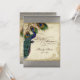 PAPER SELECTION: This is shown on "basic paper", another great choice would be "metallic ice" which is a clean white, pearl shimmery surface. It would also be beautiful on "Champagne Metallic" linen, felt or any of the other choices. COLOR PALETTE: silver metallic, tan, cream royal blue, green, and rust. DESIGN: This antique vintage inspired wedding collection has a complete ensemble of products and can be created in several colorways. If you would like it to match your wedding let us know via email and we'll be happy to assist you. This design consists of a stately peacock on a tree branch vintage art element layered three peacock feathers and over an angel etching, swirls, antique handwriting, hand painted lace overlaid parchment and a beautiful original art damask pattern. The background colour can be changed to match your wedding.